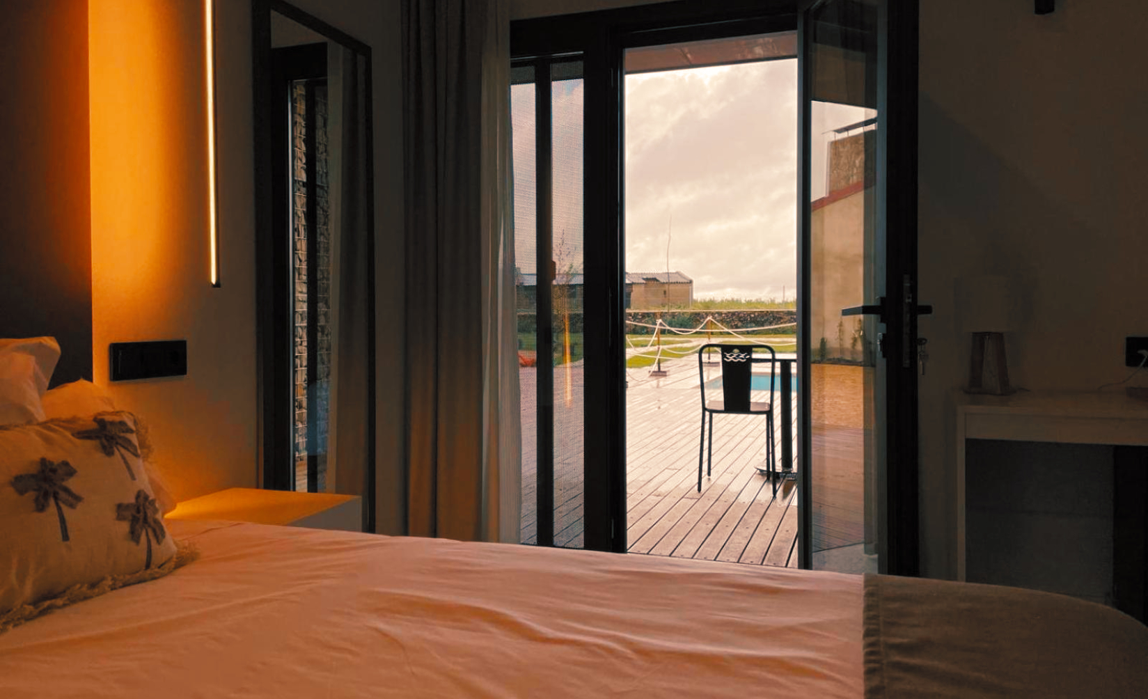Esta habitación doble cuenta con piscina privada. Esta habitación doble ofrece artículos de aseo gratuitos, albornoces y baño privado con ducha a ras de suelo y secador de pelo. La cocina totalmente equipada cuenta con fogones, nevera, lavavajillas y utensilios de cocina. La habitación doble tiene aire acondicionado, TV de pantalla plana, paredes insonorizadas, minibar, tetera y cafetera y vistas al jardín. La unidad ofrece 2 camas.
